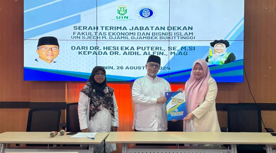 Bukittinggi. Senin, 26 Agustus 2023 – Dalam suasana penuh khidmat, Fakultas Ekonomi dan Bisnis Islam (FEBI) Universitas Islam Negeri Sjech M. Djamil Djambek Bukittinggi menggelar serah terima jabatan Dekan pada hari Senin (26/08/2024). Dr. Hesi Eka Puteri, Dekan periode 2022 – 2024, secara resmi menyerahkan jabatannya kepada Dr. Aidil Alfin. Acara yang berlangsung di aula lantai 3 gedung Madinah ini dihadiri oleh para Wakil Dekan, Kepala Bagian Tata Usaha, pejabat...Read More