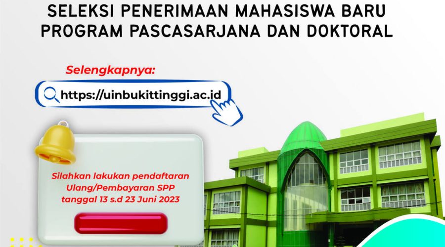 Selamat Datang Calon Mahasiswa Baru Program Magister yang diterima melalui Jalur UM-Pascasarjana Gelombang I UIN Sjech M. Djamil Djambek Bukittinggi Tahun 2023. Berikut ini kami sampaikan informasi hasil seleksi Ujian Masuk Program Magister, jadwal dan panduan pendaftaran ulang calon mahasiswa baru UIN Bukittinggi. Keputusan ini bersifat mutlak dan tidak dapat diganggu gugat. Silahkan dibaca informasi dan ketentuan berikut ini : Keputusan Rektor tentang Hasil Seleksi Mahasiswa Baru Program Magister (S2)...Read More