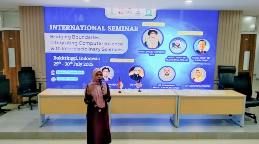 Bukittinggi (30 /07/2025) , Mahasiswi Program Studi Pendidikan Bahasa Inggris (PBI) UIN Sjech M. Djamil Djambek Bukittinggi, Hanum Salsabila, mencatatkan prestasi membanggakan dengan menjadi salah satu pemakalah dalam seminar internasional bertajuk “Bridging Boundaries: Integrating Computer Science with Interdisciplinary Sciences”. Seminar yang diselenggarakan di Gedung S Cinema UIN SMDD Bukittinggi ini, mempertemukan para akademisi, peneliti, dan mahasiswa dari berbagai negara untuk membahas integrasi ilmu komputer dengan berbagai bidang ilmu lainnya, termasuk...Read More