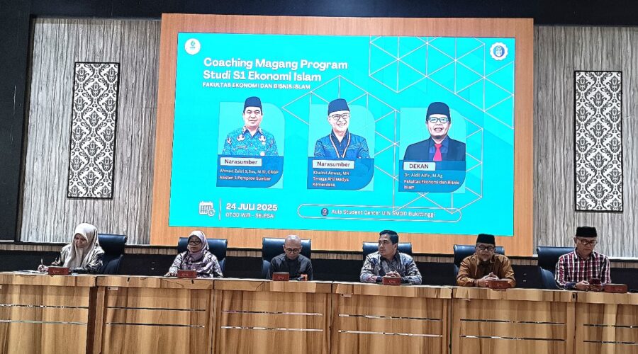 Bukittinggi (Humas) – Fakultas Ekonomi dan Bisnis Islam (FEBI) Universitas Islam Negeri (UIN) Sjech M. Djamil Djambek Bukittinggi menyelenggarakan kegiatan Coaching Magang bagi mahasiswa Program Studi S1 Ekonomi Islam. Kegiatan ini berlangsung pada Kamis, (24/7/2025) bertempat di Gedung Student Center Kampus UIN Bukittinggi. Kegiatan ini bertujuan untuk memberikan pembekalan awal kepada para mahasiswa sebelum memasuki dunia magang yang menjadi bagian penting dalam kurikulum akademik. Hadir dalam kegiatan ini Wakil Rektor...Read More