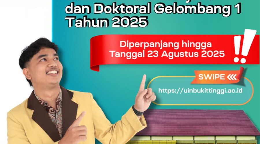 *Ketentuan Daftar Ulang dan Pembayaran UKT Camaba Pascasarjana dan Doktoral : Bagi Calon Mahasiswa Pascasarjana yang dinyatakan lulus WAJIB melakukan proses PENDAFTARAN ULANG, dengan login ke website https://pmb.uinbukittinggi.ac.id. Pendaftaran ulang diperpanjang hingga tanggal 23 Agustus 2025; Melakukan pembayaran WAJIB menyesuaikan dengan bank penampung masing-masing Fakultas; Rincian pengambilan Virtual Account menyesuaikan fakultas masing-masing, dengan rincian sebagai berikut : S2 Manajemen Pendidikan Islam (MPI), S2 Hukum Islam dan S3 Ilmu Syariah pilih...Read More