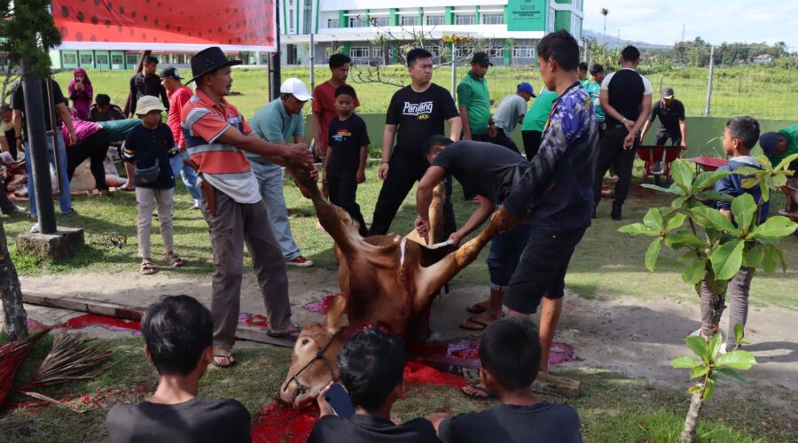 Bukittinggi (Humas) – Dalam rangka memperingati Hari Raya Idul Adha 1446 H, keluarga besar Universitas Islam Negeri (UIN) Sjech M. Djamil Djambek Bukittinggi melaksanakan penyembelihan hewan qurban sebanyak 6 ekor sapi pada hari Senin, 13 Dzulhijjah 1446 H (9/6/2025). Dok. Penyerahan Hewan Qurban kepada Daerah Binaan UIN Bukittingi Sebagai bentuk kepedulian dan pengabdian kepada masyarakat, dua ekor sapi disalurkan ke daerah binaan UIN Bukittinggi, yaitu Nagari Silayang, Kabupaten Pasaman dan...Read More