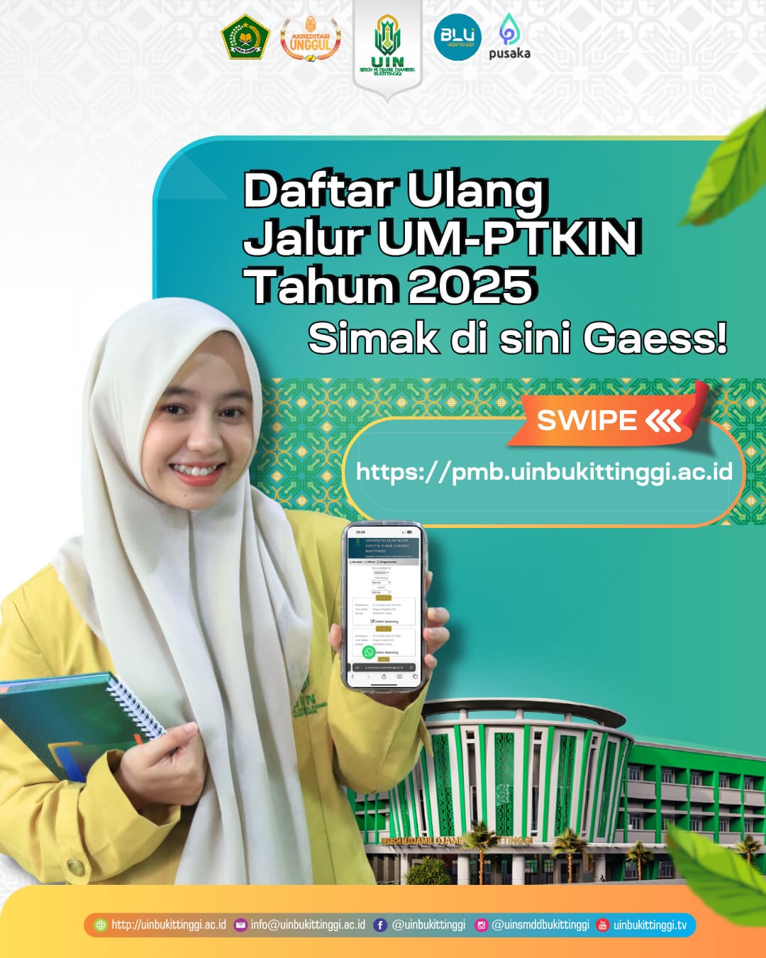 - Untuk informasi lanjutan nantinya akan kami informasikan pada website dan media online UIN Bukittinggi (Instagram @uinsmddbukittinggi). Harap follow agar tidak ketinggalan update informasi selanjutnya.