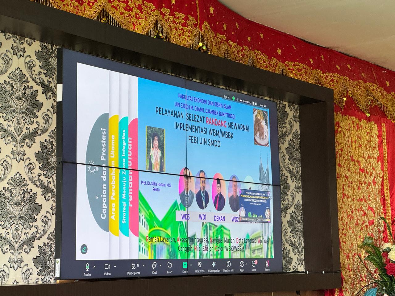 Bukittinggi (Humas) – Fakultas Ekonomi dan Bisnis Islam (FEBI) Universitas Islam Negeri (UIN) Sjech M. Djamil Djambek Bukittinggi melaksanakan Penilaian Pendahuluan Pembangunan Zona Integritas (ZI) menuju Wilayah Bebas dari Korupsi (WBK) dan Wilayah Birokrasi Bersih dan Melayani (WBBM) pada Senin (3/2/2025). Acara ini berlangsung melalui kanal zoom meeting di Aula Rektorat dan ruang Visitasi Lantai 3.