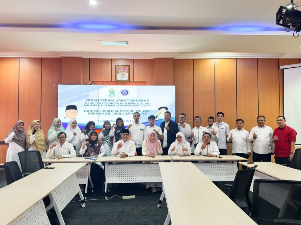 Bukittinggi. Senin, 26 Agustus 2023 – Dalam suasana penuh khidmat, Fakultas Ekonomi dan Bisnis Islam (FEBI) Universitas Islam Negeri Sjech M. Djamil Djambek Bukittinggi menggelar serah terima jabatan Dekan pada hari Senin (26/08/2024). Dr. Hesi Eka Puteri, Dekan periode 2022 – 2024, secara resmi menyerahkan jabatannya kepada Dr. Aidil Alfin.