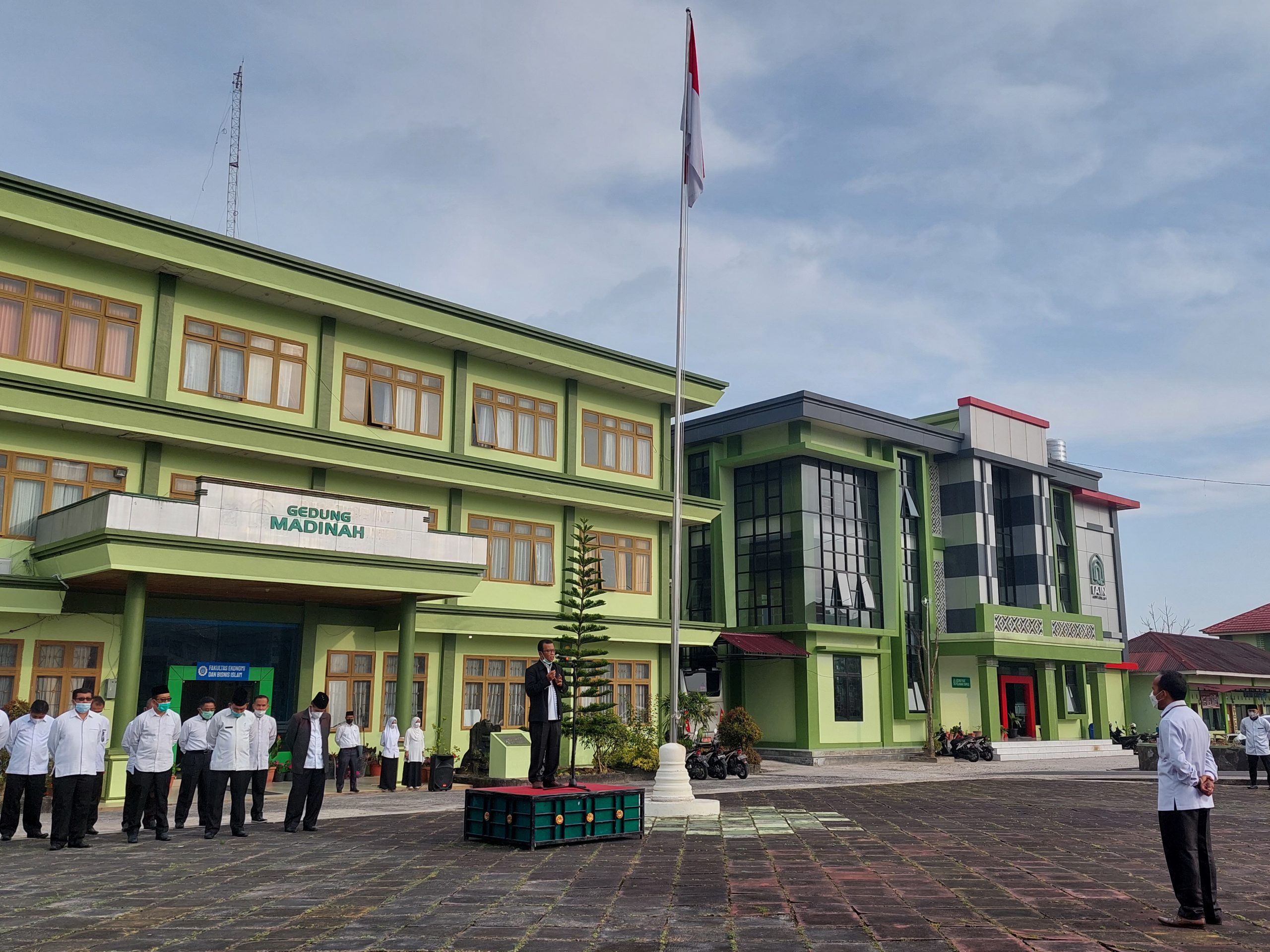 Bukittinggi. Senin, 17 Januari 2022. Mengacu kepada Surat Instruksi Menteri Agama Republik Indonesia Nomor 2 Tahun 2021, seluruh satuan kerja di bawah Kementerian Agama Pusat dan Daerah wajib melaksanakan upacara serta pengibaran Bendera Merah Putih setiap tanggal 17 setiap bulannya. Upacara ini merupakan upacara kedua yang digelar IAIN Bukittinggi di tahun 2022 setelah di awal tahun semua Satker Kemenag melaksanakan Upacara Peringatan Hari Amal Bhakti ke-76, namun ini merupakan upacara perdana di tanggal 17 Januari 2022 membuka agenda rutin awal tahun.