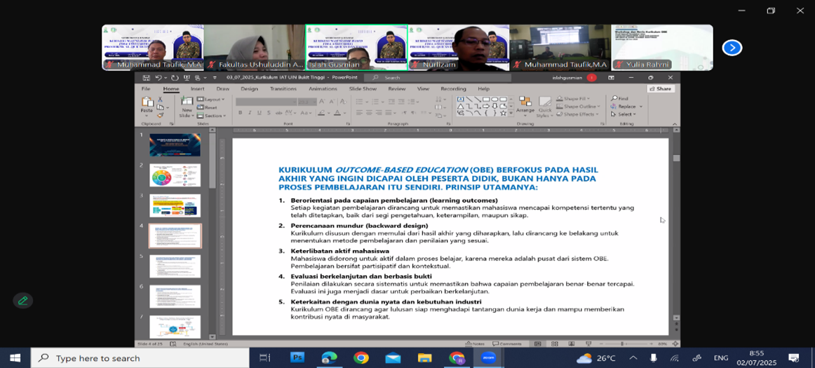 Setelah pemaparan, kegiatan dilanjutkan dengan sesi musyawarah rumpun Ilmu Prodi IAT yang membahas profil lulusan, struktur mata kuliah, serta rencana implementasi kurikulum OBE pada tahun akademik 2025/2026 dan seterusnya.
